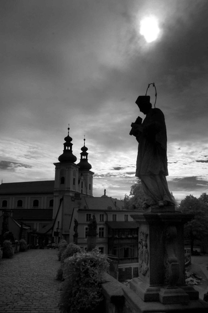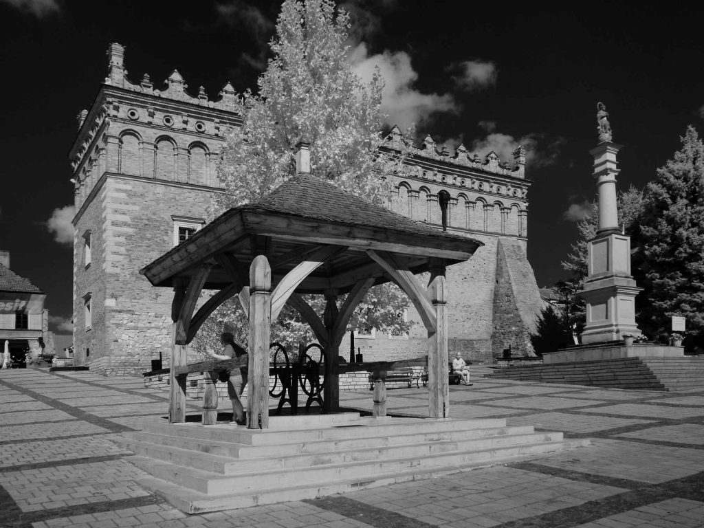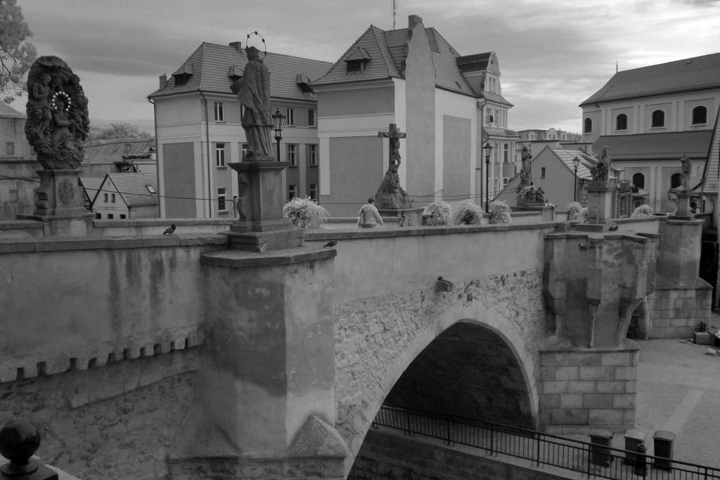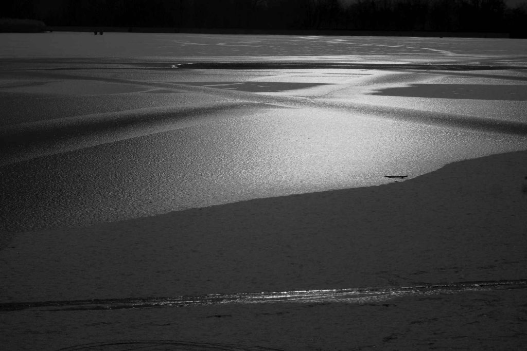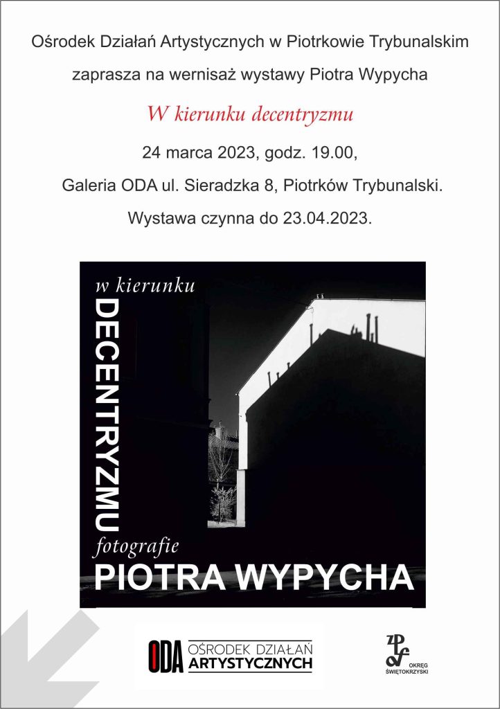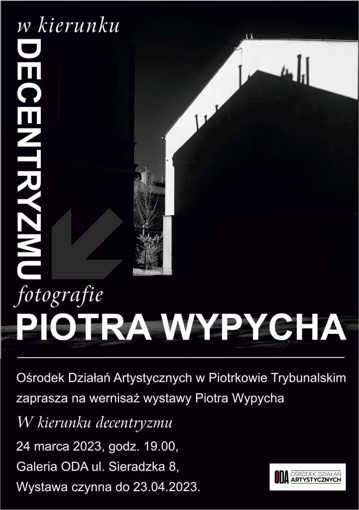 Piotr Wypych z przymrużeniem oka odwołuje się do koncepcji „decydującego momentu” w fotografii (ukutej przez Cartier-Bressona) – w jego przypadku decyduje nie tyle przypadkowy moment, ile rozbłysk wizualnej świadomości autora, gdy nagle dostrzega i uwiecznia ciekawy układ form czy kontrast światła i cienia. Pisze Aleksandra Talaga-Nowacka. Można odnieść wrażenie, że Piotr Wypych widzi czarno-biało – w wielobarwnym otoczeniu potrafi dojrzeć taką kompozycję, która najlepiej będzie się prezentowała właśnie w odcieniach szarości. Graficzne wykształcenie na Akademii Sztuk Pięknych w Krakowie robi swoje (autor jest też pasjonatem historii, a pracuje w Zespole Parków Krajobrazowych Województwa Łódzkiego). Czasami fotograf „ułatwia” sobie zadanie, robiąc zdjęcia pod słońce – wówczas oko niemal nie widzi kolorów, a na pierwszy plan wysuwa się silny kontrast światła i cienia. Czyli czerń i biel właśnie. Wypych kadruje zdjęcia w taki sposób, że te przeciwieństwa są zbalansowane, czerń nie „obciąża” ujęcia, tylko nadaje mu dramatyzmu. Czarne są malownicze cienie drzew albo sylwetki budynków, czarna jest smuga drogi albo plama wody. Biały jest zalegający śnieg, pole, słońce, białe są liście wodnych roślin, chmury. I, co zaskakujące, korony drzew – a to dzięki zastosowanym filtrom, nieco odrealniającym krajobraz. Już samo ograniczenie do czerni i bieli sugeruje, że mamy do czynienia nie tyle z dosłownym obrazem rzeczywistości, ile z artystyczną kreacją. Zdjęcia Piotra Wypycha, pokazujące uroki województwa łódzkiego, dalekie są od pocztówkowej stylistyki. A matowość dodaje im szlachetności. Wydaje się, że artystyczny walor wybrzmiałby jeszcze lepiej, gdyby artysta zrezygnował ze wskazywania w tytułach miejsc, w których wykonał zdjęcia. A najlepiej – w ogóle ich nie opisywał, by nic nie odciągało uwagi widza od przedstawienia. Tytuły: „Tama zbiornika sulejowskiego” i „Uprawa pod Sieradzem”, nadane jednym z najciekawszych (moim zdaniem) pod względem artystycznym zdjęć na wystawie – sięgających do tradycji abstrakcji geometrycznej czy eksperymentalnej fotografii z początku XX wieku – psują efekt. Tytuł „Światło rozprasza mrok” pod trzecim zdjęciem z tej serii także nie jest potrzebny.