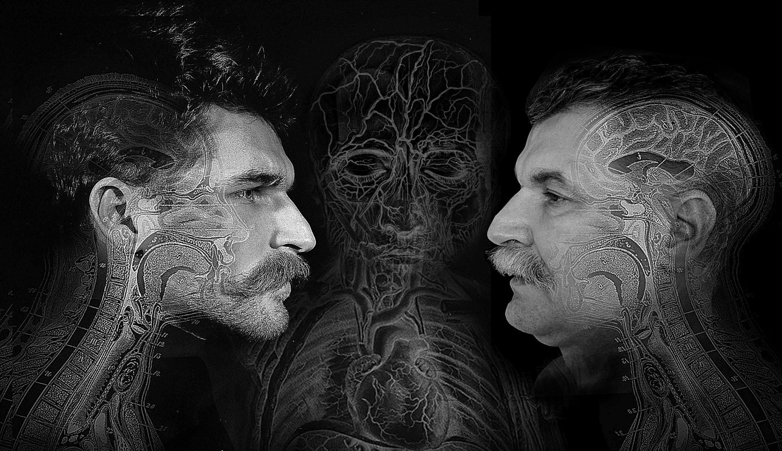 Cykl ustawiczny od momentu wykonania pierwszego swojego portretu z profilu w Pracowni Podstaw Fotografii Krakowskiej ASP – Wydział Grafiki – prowadzący prof. Zbigniew Zegan /1991/, a profil pomógł mi wykonać dzisiejszy prof. Lech Polcyn. Najczęściej wykonuję te montaże w równych odstępach czasu/albo w przybliżeniu równych – 5; 10; 15 lat… Ego mi mówi: zmieniasz się Piotrze… zrób coś… bo starość puka, a przecież dziś żyjemy w kulcie młodości… – A ja odpowiadam: to nieuchronne i mam w nosie te czasy …. nie jest z tym mi dobrze ani źle…