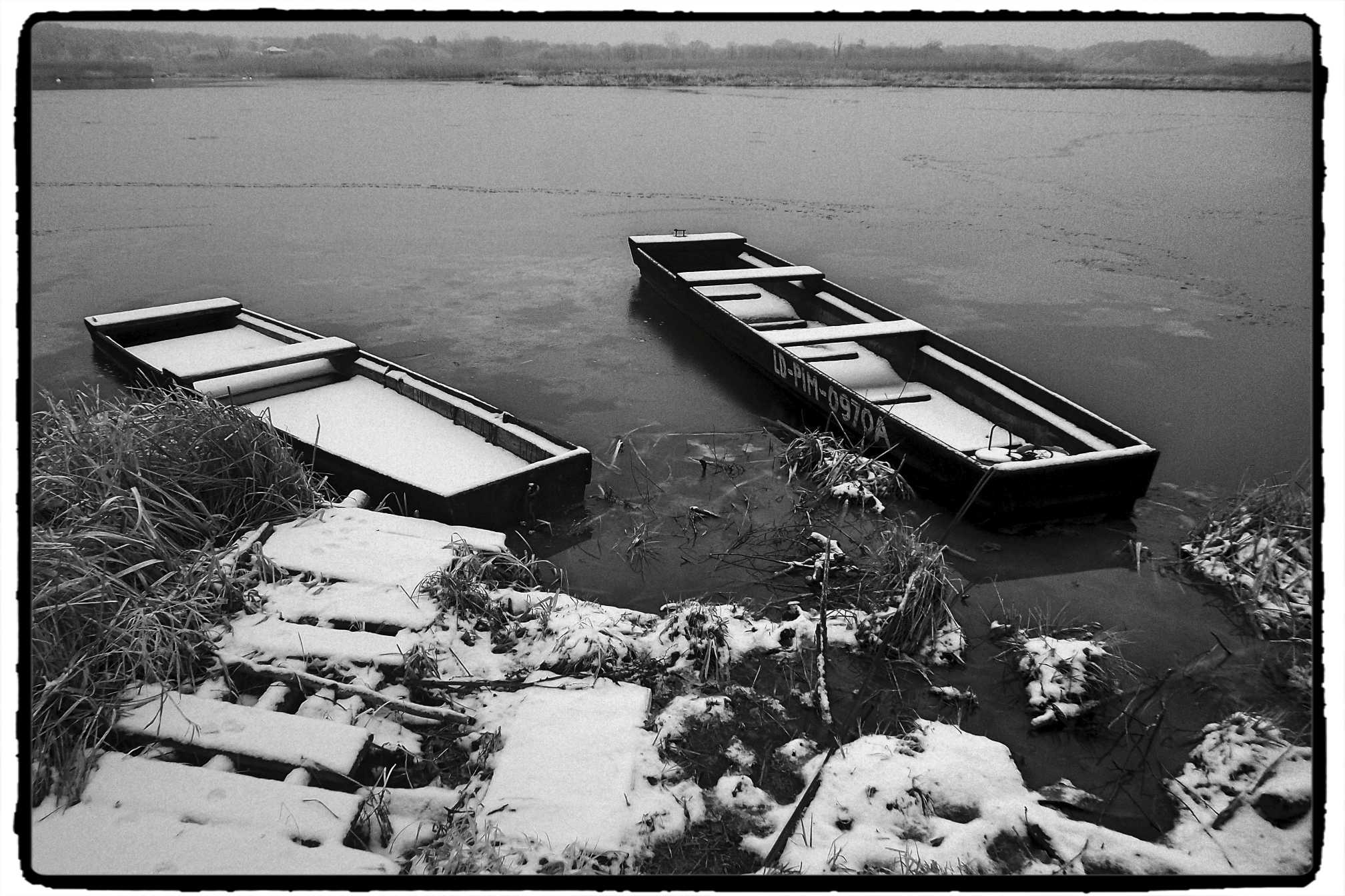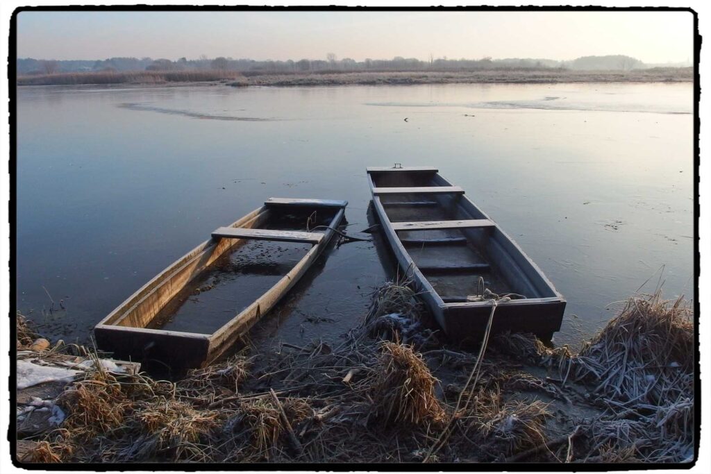 Temat ten na pozór łatwy, miły i przyjemny – w ostatnim miesiącu stał się moją fotograficzną „obsesją”. Chcąc wydobyć z niego jak najwięcej co rusz – obserwując zmienność warunków pogodowych dla fotografii – staram się być jak najczęściej nad Pilicą i doświadczać co się tym razem zadziało z łodziami… Innym ważnym czynnikiem jest tu człowiek, a konkretnie wędkarze – właściciele owych kryp – w zależności od swej aktywności na wodzie zostawiają łodzie w różnych miejscach, dbając albo nie dbając o nie… Te trzy czynniki – pogoda, człowiek i fotografujący determinują niepowtarzalność każdej sytuacji mającej miejsce w jakimś czasie… a ja dalej niespokojny i w drogę…bo każda minuta inna…