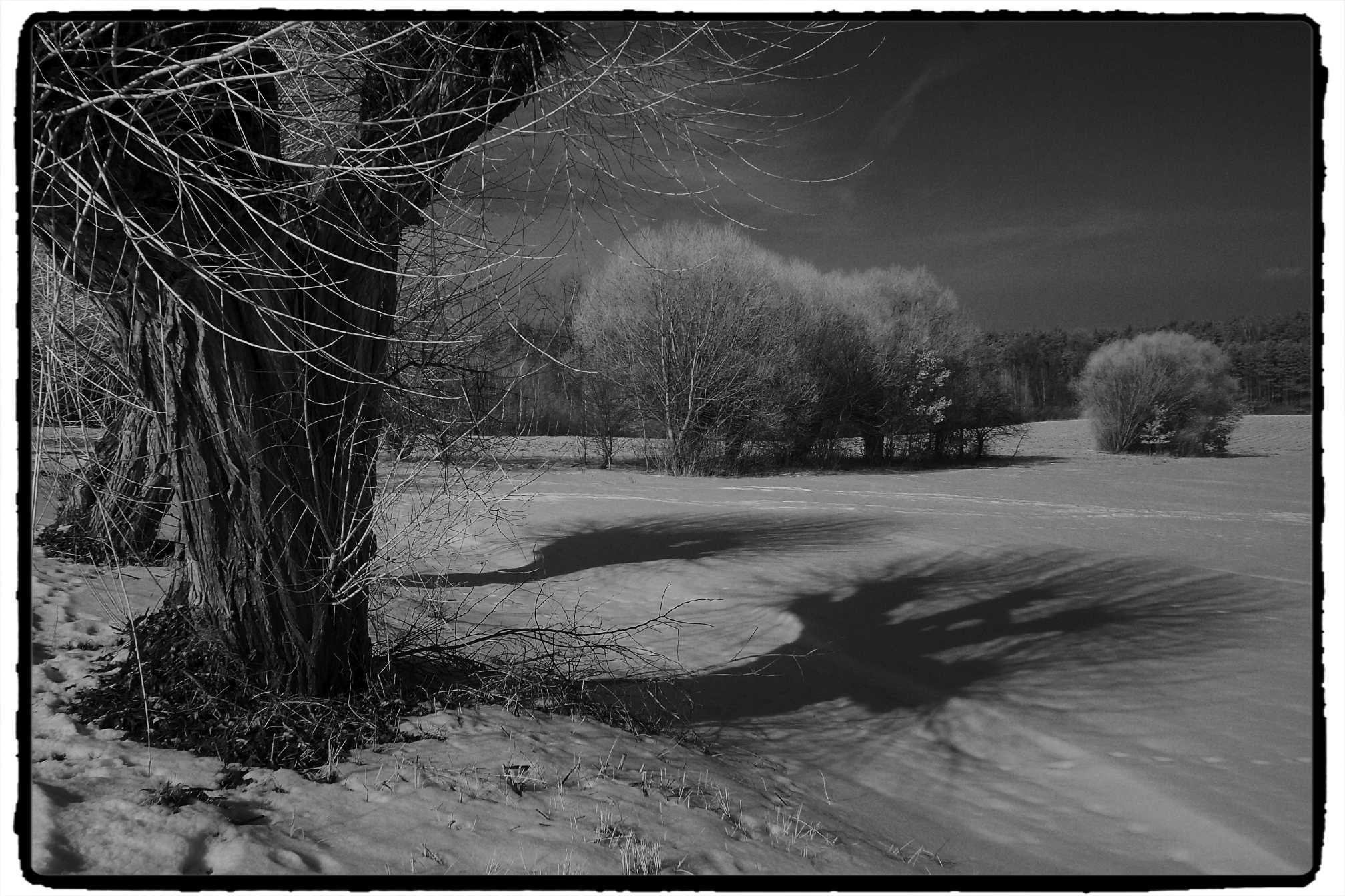 Kilka zdjęć z dalszych i bliższych spacerów fotograficznych. Zdjęcia wykonałem Olympusem EP3 przystosowanym do podczerwieni wraz z mocno czerwonym filtrem.
